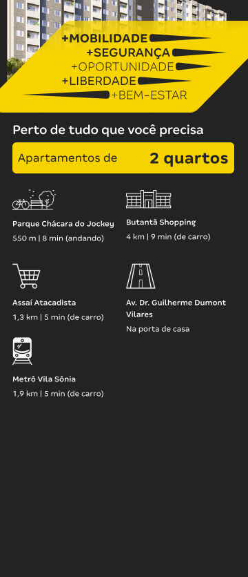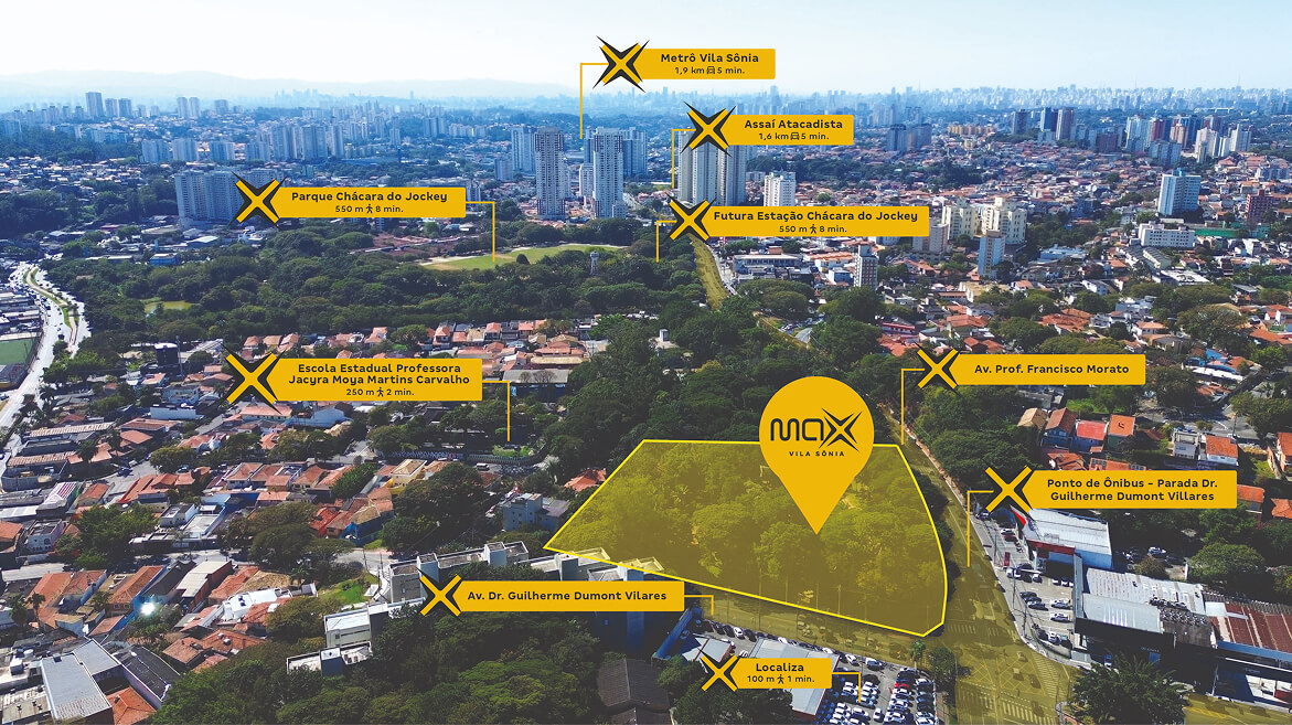 O Max Vila Sônia está localizado no Jardim Londrina, na zona oeste de São Paulo, com fácil acesso a uma infraestrutura completa de mobilidade, saúde, ensino e lazer. Fica próximo à estação do Metrô Vila Sônia, ao Parque Chácara do Jockey, ao Estádio Morumbi, a supermercados como Assaí e Max Atacadista, e a universidades como UniFECAF e Estácio. Também está perto de unidades de saúde como a AMA/UBS Vila Sônia, Hospital Family e Hospital Leforte, além dos shoppings Raposo e Butantã. Um endereço que reúne praticidade, conexão e qualidade de vida.