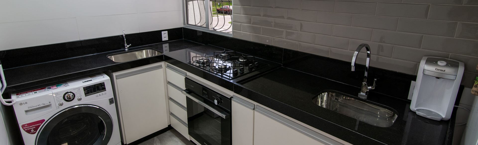 Na hora de escolher os móveis, prefira modelos modulares, os quais permitem deixar os eletrodomésticos maiores, como geladeira, fogão e micro-ondas, embutidos.