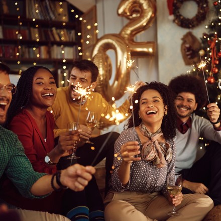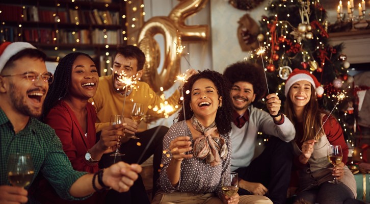 Iluminação festivaIluminação festiva | Grupo de amigos sorrindo e segurando luzes durante uma celebração festiva à mesa | Casa e Decoração | Blog da Tenda