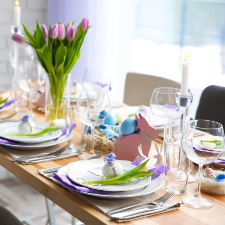 Uma outra alternativa é misturar utensílios de casa com artigos decorativos temáticos de Páscoa. Em outras palavras, você pode comprar apenas alguns itens de decoração, que já irão trazer um visual diferente para o seu almoço, combinando pratos, copos, taças e talheres com guardanapos e sousplats temáticos, por exemplo.