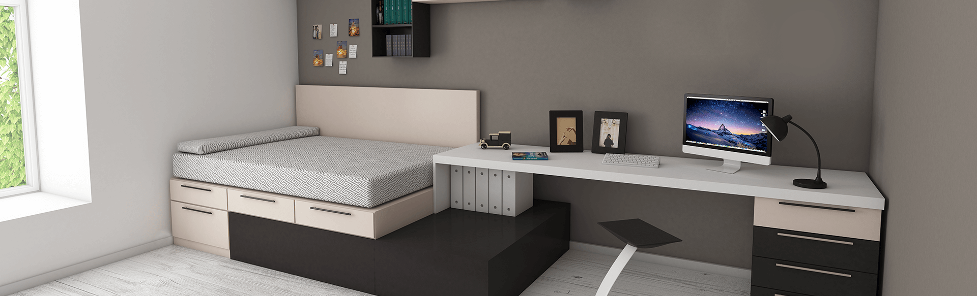 Uma cama com espaço para guardar roupas, roupas de cama e sapatos sob ela, por exemplo, otimiza espaço e elimina o gasto com a compra de um grande guarda-roupa.