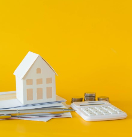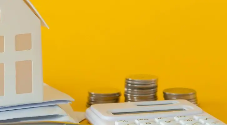 Como funciona a amortização de um financiamento? | Foto de uma casinha ao lado de uma calculadora e algumas moedas, com uma pessoa ao fundo | Dúvidas sobre dívidas | Eu Dou Conta