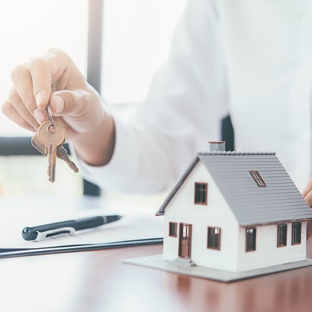 Modos de usar o FGTS na compra de um imóvel | Mulher segurando chave com chaveiro de casa em destaque | Trilha da Conquista | Blog da Tenda
